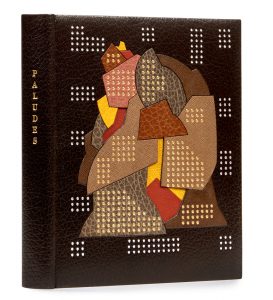 GIDE (André) — Paludes. — Paris, NRF, 1921. — In-8 (23,8 x 18,6 cm) maroquin marron, sur le plat supérieur décor de pièces imbriquées de maroquin brun, gris, rose et jaune, avec incrustation en creux de maroquin jaune et chagrin rouge,...