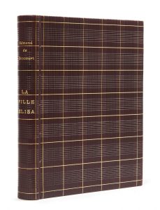 GONCOURT (Edmond de) — La Fille Élisa. — Paris, le livre du bibliophile, Éditions Georges Briffaut, 1929. — In-8 (27,8 x 20,7 cm), veau aubergine, sur les plats et le dos décor inspiré des tartans fait de filets à froid regroupés par sept...