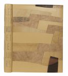 box sable partiellement marbré et de bois (palissandre et loupe d’érable), dos lisse orné du titre en lettres bâton mosaïquées, en veau sable, ocre et gris, doublures bord à bord de veau bleu nuit, gardes de peau velours mordorée, non rogné, couvertures et dos conservés, chemise et étui (M[onique] M[athieu] – 1989).