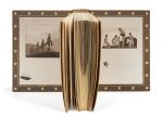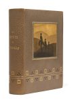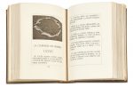 chaque plat comportant un cuivre encré incrusté et encadré d’un filet doré, dos lisse, encadrement intérieur de maroquin gris avec carrés de maroquin grège sertis d’un filet doré, aquatintes originales avec remarques tirées sur satin en doublures, tranches dorées, couverture conservée, chemise et étui (Georges Cretté).