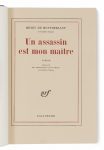 - MONTHERLANT. Un assassin est mon maître. Paris, Gallimard, 1971. In-12 (21,3 x 14,3 cm), reliure janséniste maroquin grenat, dos à nerfs, doublures de maroquin gris, gardes de soie pourpre, tête dorée, couvertures et dos conservés, étui (Semet & Plumelle).