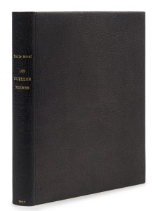 Sobre maroquin noir de Kiyomiya s’accordant au sujet de l’ouvrage.