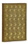 entièrement recouverts d’un décor de motifs floraux stylisés dorés dessinés par Lucien Pissarro, dos lisse avec titre en long poussé or, doublures de basane olive, emboîtage à fenêtres de plexiglas avec dos de maroquin olive (R. Vernier, 1993), étui.