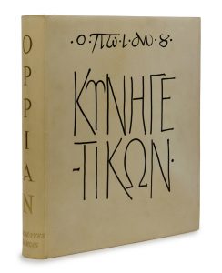 OPPIAN — Cynégétique. — Paris, Société des Cent-Une, 1955. — Petit in-folio (37,8 x 28,2 cm), vélin ivoire, titre et auteur de l’œuvre e, grandes lettres grecques au premier plat, dos lisse avec titre et auteur dorés, tranches dorées,...