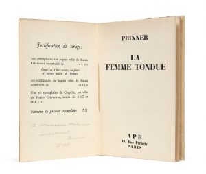 PRINNER (Anton) — La Femme tondue. — Paris, APR, [1946]. — In-12 (19,8 x 13 cm), broché, couverture imprimée.