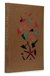 et maroquin, orangé, framboise, émeraude, vert d’eau, noir, bleu nuit, mosaïquées en creux et à niveau, nom de l’auteur mosaïqué en chagrin rose, au plat inférieur petit losange mosaïqué en chagrin framboise, dos lisse avec titre doré, tête dorée, doublures et gardes de peau velours gris perle, couvertures et dos conservés, chemise et étui (M. Richard - 1999).
