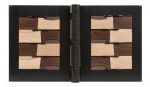 imitant le bois de différents tons, avec incrustation en creux de pièces grenues avec 5 bandes noires dont les ondulations dépassent la surface, lanières de couture en buffle marron apparentes en mors, titre à la chinoise au dos poussé à l’œser marron, gardes de peau velours ocre, couverture illustrée et dos conservés, chemise et étui (Ph. Fié – 2009).