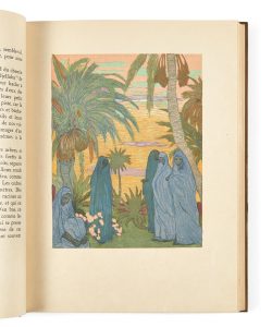 THARAUD (Jérôme et Jean) — Marrakech ou les Seigneurs de l’Atlas. — Lyon, Cercle lyonnais du livre, 1924. — In-4 (30,3 x 22 cm), box caramel, décor de larges pièces en relief de veau poncé brun clair, figurant des feuilles d’arbres...