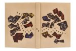 et bleu-violet partiellement imprimé en sépia d’un motif évoquant la maille textile, titre poussé en grandes lettres à l’œser marron, courant d’un plat à l’autre en passant par le dos lisse, doublures de peau velours brune, gardes de peau velours bleue, non rogné, couvertures et dos conservés, chemise et étui (Honnelaître – 1993).