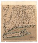 JEFFERYS, Thomas. A Map Of The Most Inhabited Part Of New England Containing The Provinces Of Massachusets Bay and New Hampshire. With the Colonies of Conecticut and Rhode Island . . . 1755. Londres, 1755 (1759/1768). Limites en col. ancien. Carte en 3 feuilles (sur 4) non jointes, manque la partie supérieure gauche. Dimensions de chaque feuille : 520 x 490 mm. Papier épais bruni avec filigrane non identifié. Mer et côtes coloriées en vert et villes en rouge à l'époque.
