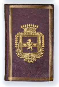 ALMANACH royal. Paris, Veuve D'Houry, 1787. In-12, maroquin rouge, triple filet, armoiries, dos orné, doublure et gardes de tabis bleu, tranches dorées (Reliure de l'époque).