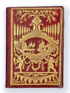 DÉLICES de la mode et du bon goût (Les). Paris, Janet, s.d. [calendrier dépliant pour 1807]. In-12, maroquin rouge à long grain, plaque dorée comportant un paysage et un médaillon tenu par deux angelots, dos orné (Reliure de l'époque).