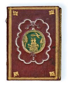ÉTRENNES mignonnes, curieuses et utiles. Paris, Jacques-Charles Durand, 1778. In-12, maroquin rouge, triple filet gras et maigre, fleuron aux angles, médaillon central de maroquin vert dans un filet d'argent contourné, dos orné, doublure et garde de papiers dominotés dorés différents, tranches dorées (Reliure de l'époque).
