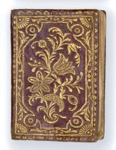 ÉTRENNES mignonnes, curieuses et utiles. Paris, Guillot, 1791. In-12, maroquin rouge, encadrement à écoinçons contournés, le centre occupé par un grand bouquet doré, dos orné, tranches dorées, doublure de papier dominoté (Reliure de l'époque).