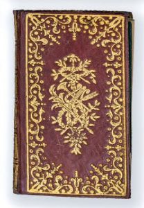 XIXe siècle). In-12, maroquin rouge, plaque à encadrement de dentelle, au centre grand trophée doré, dos orné (Reliure du XVIIIe siècle).