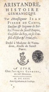 CAMUS (Jean-Pierre). Aristandre, histoire germanicque. Lyon, Jacques Gaudion, 1624. In-12, vélin rigide à recouvrement (Reliure de l'époque).