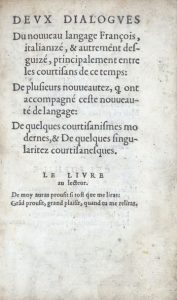 [ESTIENNE (Henri)]. Deux dialogues Du nouveau langage François, italianizé, & autrement …