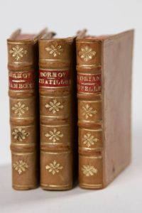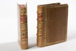 Plein veau havane, dos 4 nerfs, pièce de titre rouge, caissons ornés. Plats encadrés d'une triple roulette, tranches rouges. Très bon état pour les trois ouvrages. Reliés de manière identique, nous n'avons pas voulu les séparer