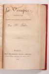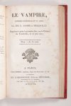 Contient : BYRON [i.e. POLIDORI] - FABER (H) : Le Vampire, nouvelle traduite de l'anglais de lord Byron. Paris, Chaumerot jeune, 1819. In-8° de 62 pp. [édition originale ; mouillure aux 2 premiers cahiers]. Le Vampire, mélodrame en trois actes, avec un prologue, par MM. *** ; Musique de M. Alexandre Piccini ; décors de M. Ciceri ; Représenté, pour la première fois, à Paris, sur le Thaâtre de la Porte-Saint-Martin, le 13 Juin 1820. Paris, J.-N. Barba, 1820. 56 pp. SCRIBE et MELESVILLE. Le Vampire, comédie-vaudeville en un acte. Représentée pour la première fois, sur le Théâtre du Vaudeville, le 15 juin 1820. Paris, Guibert, Imprimerie d'Anthoine Boucher, 1820. 35, [1] pp. [des rousseurs]. BRAZIER, GABRIEL et ARMAND. Les Trois Vampires, ou le Clair de lune, folie-vaudeville en un acte. Représentée pour la 1re fois à Paris, sur le Théâtre des Variétés, le 22 juin 1820. Paris, J.-N. Barba, 1820. Faux-titre, 25, [1] pp. DESAUGIERS. Cadet Buteux au vampire, ou Relation véridique du Prologue et des trois Actes de cet épouvantable Mélodrame, écrite sous la dictée de ce passeux du Gros-Caillou, par son secrétaire Désaugiers. Paris, Rosa, Août 1820. Faux-titre, titre, 58 pp. [« C'est un pot-pourri moins ingénieux sans doute que celui de la Vestale, mais plein de traits piquants, qui offre une critique agréable de la monstrueuse pièce de M. Nodier » (Collin de Plancy)].