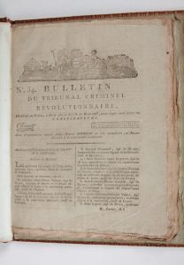 Bulletin du Tribunal criminel révolutionnaire, établi au Palais, à Paris par la Loi du 10 Mars 1793, pour juger sans appel les CONSPIRATEURS. [Paris], imprimerie Clément, [1793].
