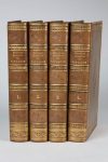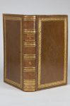 12,5 par 21 cm. 506 ; 504 ; 499 ; 563-(6) pages. Plein veau olive romantique d'époque, dos à 4 faux nerfs orné de filets et roulettes dorés ainsi que de rameaux d'olivier à froid, titre et tomaison dorés, grand fer central à froid sur les plats encadré d'une alternance de filets et de roulettes dorés et à froid, alternance de roulettes dorées et à froid sur les coupes, tranches mouchetées de vert.
