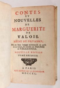 VALOIS (Marguerite de) : Contes et Nouvelles. Mis en beau langage accommodé au goût de ce temps, & enrichis de Figures en Taille-Douce. Nouvelle édition. Paris, Aux Depens de la Compagnie, 1740. 2 tomes en 1 volume.