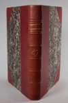 24 par 32 cm. 162 pages. Demi-chagrin rouge à coins, 6 nerfs, fer de tête de taureau sur le dos, tête dorée, couvertures et dos conservées. 2 petites taches sur le dos (minuscules), parfait état intérieur.
