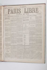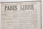 Paris Libre. Journal du soir. N° 1- 43, mercredi 12 avril-mercredi 24 mai 1871. [Le n° 42 fait défaut]. Paris, Imprimerie nouvelle (Association ouvrière), 1871. Un volume.