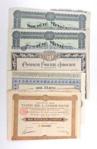 TITRES ANCIENS ASIE TITRES ANCIENS ASIE. Cinq titres en très bon état : Compagnie Foncière d'INDOCHINE. 1928. …
