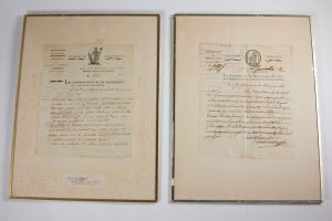 Deux documents rares, en parfait état, chacun sous verre.