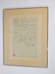 Daté du 3 Fructidor An 7 (20 août 1799), il est signé manuscritement par Jean-Baptiste BERNADOTTE, alors Ministre de la Guerre (du 2 juillet au 14 septembre 1799). Il sera ensuite maréchal d'Empire, puis roi de SUEDE de 1812 à 1844.