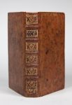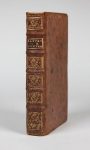 Veau fauve marbré de l'époque, dos 5 nerfs caissons ornés, pièce de titre bordeaux, roulette dorée sur coupes. Défauts aux coiffes, quelques griffures sur le 1er plat, très bon état intérieur.