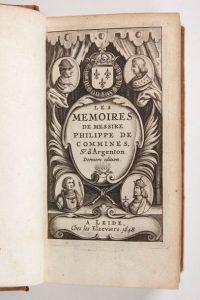 COMMINES (Philippe de) : Les Mémoires de Messire de Philippe de Commines, Sr d'Argenton. Dernière édition. Leide, chez les Elzeviers, 1648. Un volume.