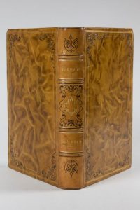24,5 par 16 cm. IV-448 pages. Un frontispice, 3 gravures hors-texte et un grand plan dépliant. Pleine basane beige racinée, dos 4 faux nerfs, caissons décorés à l'or et à froid, plats avec un encadrement à l'or et à froid, tête dorée, couvertures et dos conservés, roulette dorée à l'intérieur (reliure postérieure signée LILIÉ). Parfait état, si l'on excepte deux déchirures sur le plan, sans manque, et quelques rarissimes rousseurs.