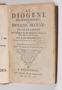 LE GUAY de PRÉMONTVAL (André-Pierre) : Le Diogène de d'Alembert; ou Diogène décent : pensées libres sur l'Home [sic] & sur les principaux objets des connoissances de l'Home