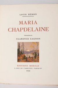 HEMON (Louis) : Maria CHAPDELAINE. Illustrations de Clarence GAGNON. Paris, Mornay, 1933. Un volume.