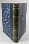 19 par 25 cm. Demi-basane bleue nuit à coins carrés, avec un décor tacheté d'argent sur le dos, et un très curieux travail sur les épaisseurs des caissons. Couvertures et dos conservés. Quelques frottements discrets sur la reliure, parfait état intérieur.