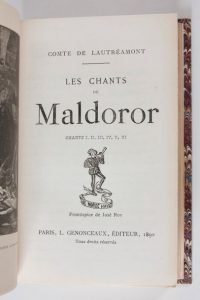 LAUTREAMONT (Isidore Ducasse dit le comte de) : Les Chants de Maldoror. Chants I, II, III, IV, V, VI. Paris, L. Genonceaux, 1890. Un volume.