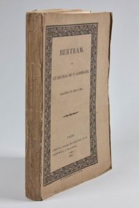 [NODIER (Charles)]. MATURIN (Charles Robert) : Bertram ou le Château de S.t-Aldobrand, tragédie en cinq actes. Traduite librement de l'anglois du Rév. R. C. Maturin, par MM. Taylor et Ch. Nodier. Paris, Gide Fils, Ladvocat, 1821. Un volume.
