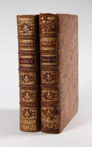 19 par 25 cm. (12)650 ; (12)669-(2) pages. Plein veau d'époque, dos 5 nerfs, pièce de titre rouge. Bien complet de la carte dépliante. Une coiffe abimée, petits défauts superficiels à la reliure. Papier de garde manquant dans le tome 1. Malgré cela, un exemplaire convenable.