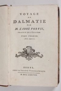 FORTIS (Abbé) : Voyage en Dalmatie. Traduit de l'Italien, avec figures. Berne, Société typographique, 1778. 2 tomes en 1 volume.