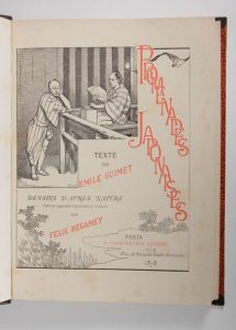 GUIMET (Emile) : Promenades Japonaises. Dessins d'après nature (dont six aquarelles reproduites en couleur) par Félix REGAMEY. Paris, G. Charpentier.1878. un volume.