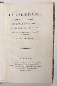 DIDEROT (Denis) : La Religieuse. Nouvelle édition. Paris, Rousseau, Mme Devaux, Bertin frères, an XIII - 1804. 2 tomes en un volume.