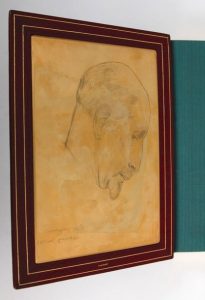 18 par 24 cm. 186 pages. Plein maroquin bordeaux, dos 4 nerfs, doublure en maroquin avec un cuivre incrusté dans le 1er plat, gardes de soie verte, filet sur coupe, toutes tranches dorées, couvertures et dos conservés. Reliure signée BLAIZOT. Parfait état.