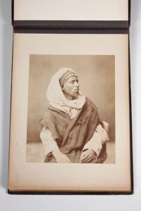 22 photographies originales collées sur carton fort, montées sur onglet, de 27,5 par 21 cm. Une photographie est colorisée. Les photos viennent majoritairement de l'Atelier de Félix BONFILS, photographe installé à Beyrouth, et très connu pour ses photographies appréciées des touristes visitant l'Orient, dont l'Egypte. Mort en 1885, son atelier poursuit son activité, tenu par sa femme et son fils.