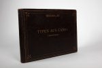 40,5 par 29 cm. Reliure plein cuir chagriné, triple encadrement doré avec écoinçons, titré à l'or sur le plat. Quelques frottements, mais très bon état.