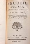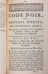Le recueil d'édits contient l'intégralité du CODE NOIR (pages 67-174). Bon état intérieur.