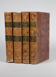 (COOK, BYRON, CARTERET et WALLIS) : Relation des voyages entrepris par ordre de Sa Majesté Britannique ; et successivement exécutés par le Commodore BYRON, le Capitaine CARTERET, le Capitaine WALLIS et le Capitaine COOK, dans les vaisseaux le Dauphin, le Swallow & l'Endeavour. Traduite de l'anglois. Paris, Nyon, Mérigot, 1789. 8 tomes reliés en 4 volumes.