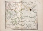 12,5 par 19,5 cm. VI pages et 98 colonnes, et 20 cartes sur doubles pages, aux limites coloriées. Reliure plein papier d'époque, petits défauts sur le dos. Quelques taches d'encre sur la carte de l'Italie, une petite tache sur la Turquie, une autre sur l'Amérique septentrionale. Rares rousseurs.