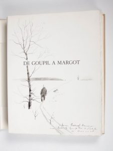 Un très beau dessin original à l'encre sur la page de Faux-titre, accompagné d'un envoi manuscrit de la part de l'illustrateur.